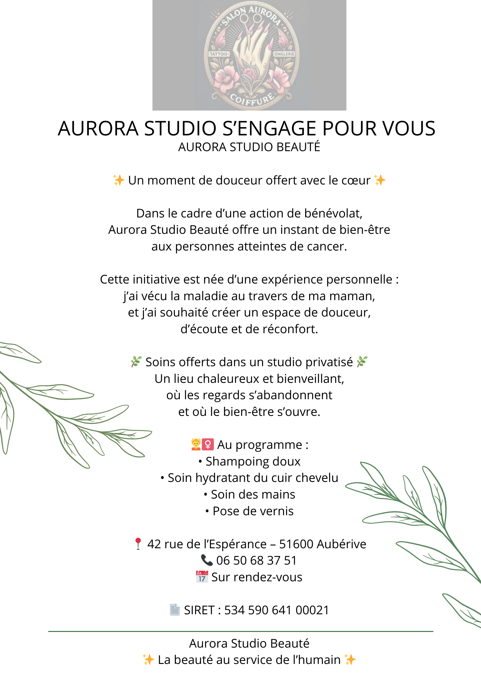 Découvrez Aurora Studio à Auberive, un salon créatif où Aurore vous accompagne pour vos coiffures, manucures et tatouages.